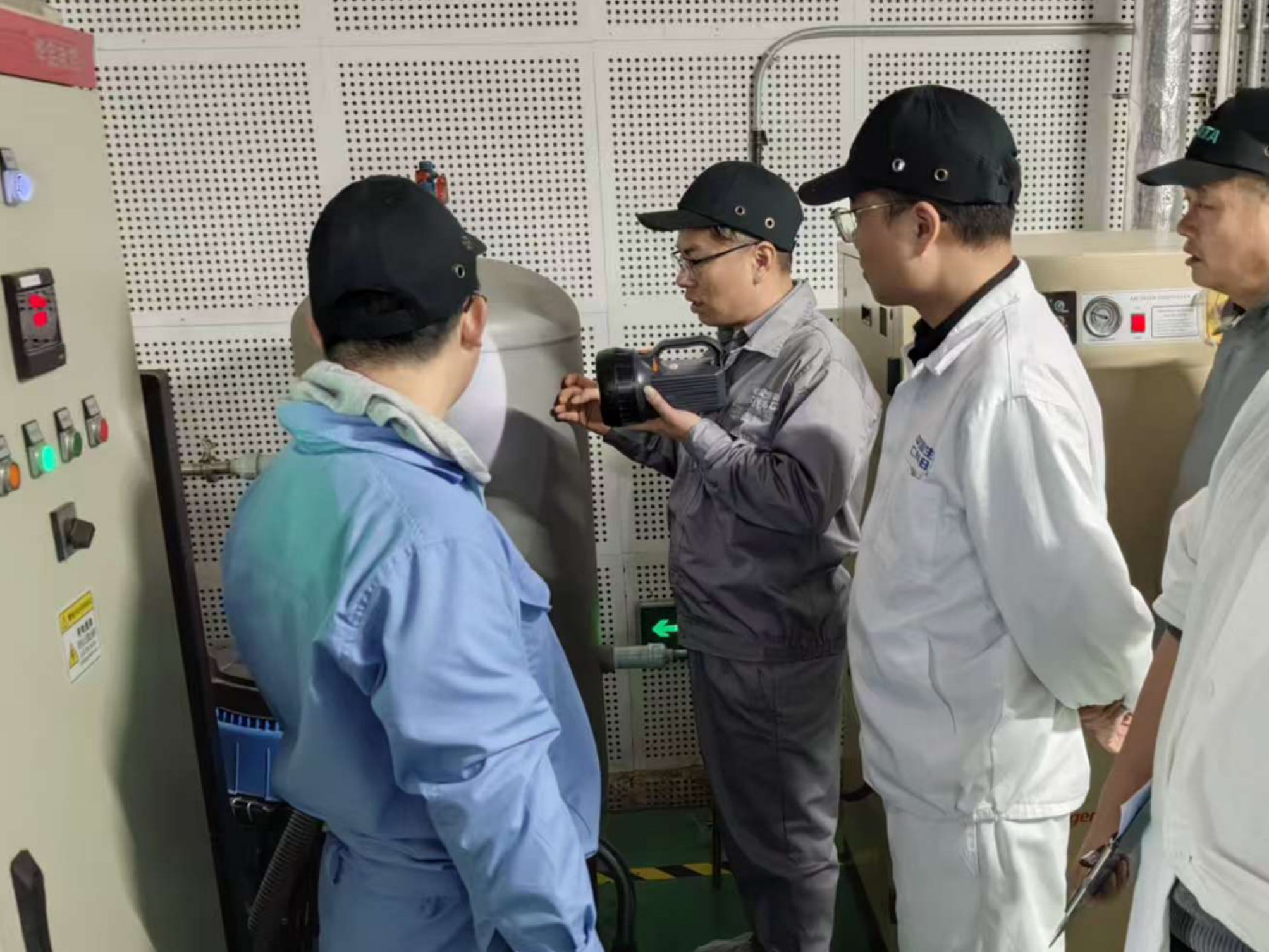 全面排查,不留死角。 公司安全检查组深入各个关键区域,展开拉网式排查。在beats365官方唯一入口蓉生,检查组对血浆检测立体库、动物实验室、污水处理站、乙醇回收区及配电房等重点区域进行了细致检查。在beats365官方唯一入口上海,专项小组聚焦用电安全,对办公及生产区域的电气线路、设备进行隐患排查,确保用电安全。